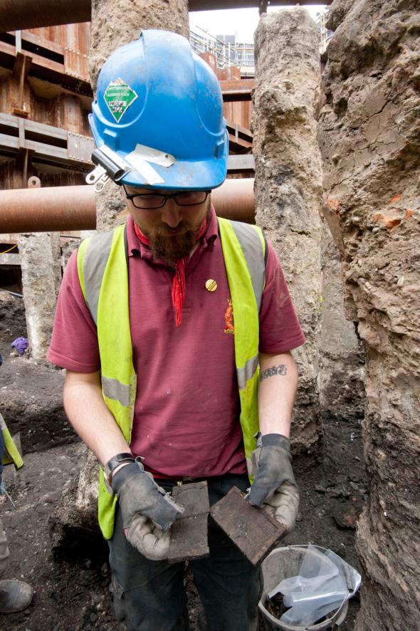 Unul dintre arheologi descoperă fragmentele unor tăbliţe (Foto:nationalgeographic.com/MOLA)