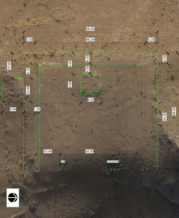 În această imagine, arheologii au suprapus o schiţă cu dimensiunile sitului peste una dintre fotografiile în care apare acesta (Foto:nationalgeographic.com/Andrea LaBianca)