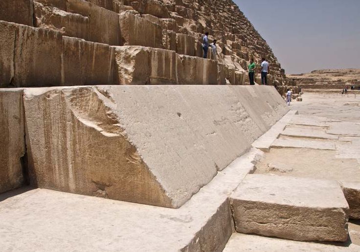 Iniţial, piramida faraonului Keops fusese învelită în blocuri de calcar, însă, de-a lungul timpului, acestea fie s-au erodat, fie au fost reutilizate. ,,Cea mai mare parte a acestor blocuri a fost preluată şi folosită ca material de construcţie, lăsând piramida aşa cum o putem vedea astăzi”, afirmă Glen Dash, directorul Fundaţiei de Cercetare Glen Dash, într-un raport de analize realizat anul trecut.