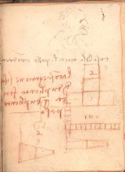 În timpul studiului său, cercetătorul britanic a descoperit sub schiţa care reda chipul de femeie note în care erau prezentate figuri geometrice sub forma unor blocuri trase de o greutate atârnată de un scripete. Oamenii de ştiinţă spun că această reprezentare le este prezentată şi astăzi elevilor pentru a le demonstra cum acţionează legile frecării.