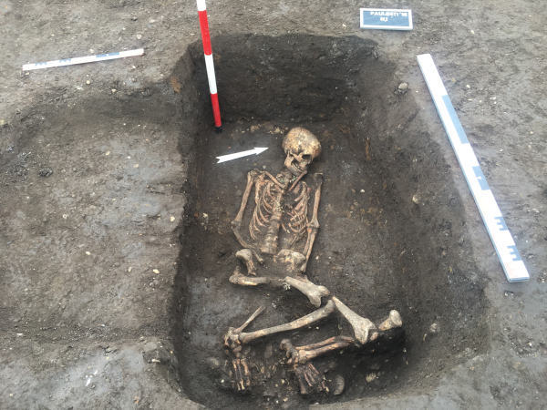 „Are o vechime în jur de 5000 de ani, poate să aibă şi 5100 dar şi 4900. Cam atunci încep să apară astfel de morminte în zona aceasta. Interesant e întreg ansamblul. În jurul mormântului au făcut un cerc din pietre care are un diametru de aproximativ 5 metri, iar în mijloc au făcut acest mormânt. Probabil are sexul masculin, depus într-o poziţie normală pentru epoca lor, îl puneau pe spate şi cu genunchii ridicaţi, îndoiţi”, a declarat Alin Frânculeasa, arheolog din cadrul Muzeului Judeţean de Istorie Prahova, transmite corespondentul Mediafax.