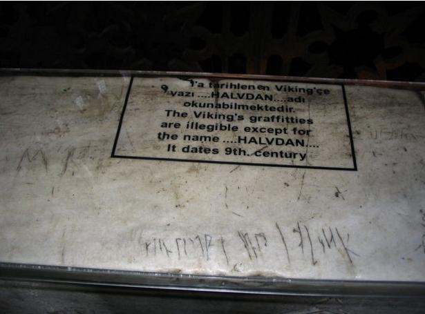 Pe pereţii acesteia s-au descoperit două inscripţii aparţinând vikingilor, probabil a celor din Garda Varegă din Constantinopol. Garda Varegă era, de fapt, o grupă de mercenari vikingi ce se aflau în slujba bizantinilor