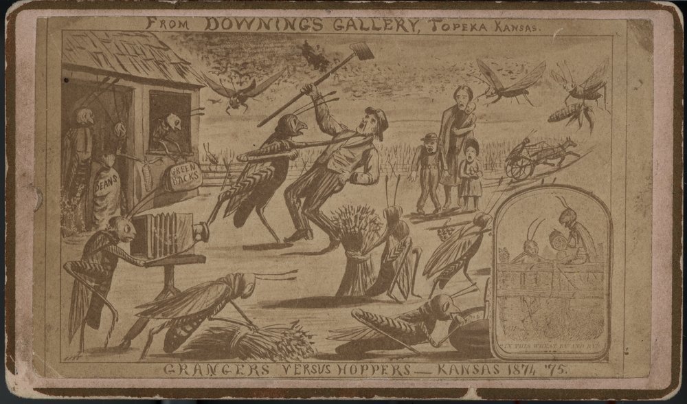 La sfârşitul secolului XIX, lăcustele care distrugeau culturile erau un fenomen comun în zona Americii, dar cea mai puternică invazie  fost cea din 1874. O primăvară uscată şi aridă a constituit mediul propice pentru ca lăcustele să-şi depună ouăle în număr mult mai mare. Miliarde de lăcuste au eclozat şi au început să se împrăştie în Nebraska, Kansas, Dakota, Iowa şi alte state. Martorii afirmă că lăcustele veneau sub formă de nori care blocau lumina soarelui pentru câteva ore.  Acestea au devorat culturi întregi precum şi hainele de pe oameni.
