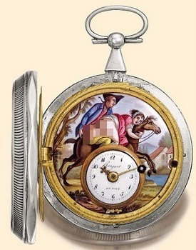 În timpul secolului XVIII, au apărut ceasurile erotice care erau utilizat de cei ce şi le puteau permite. La început, bărbaţii avea poze cu soţiile sau iubitele lor pentru a le avea în timpul călătoriilor. În timp, ceasul a evoluat, iar pe el se aflau imagini indecente cu alte femei faţă de soţiile lor. După Revoluţia Franceză, religia a interzis în Europa  fabricarea ceasurilor de buzunar cu imagini indecente.