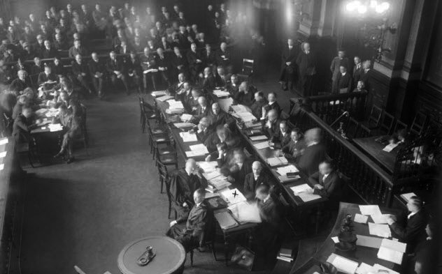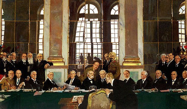 La sfârşitul Primului Război Mondial a fost semnat Tratatul de la Versailles în care germanii au fost forţaţi să semneze aşa numita „clauză de vinovăţie”. Altfel spus, trebuia să pună în scris faptul că războiul a fost numai din vina lor.
