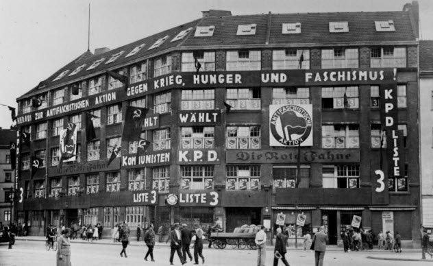 Naziştii au profitat de această temere. Au răspândit texte şi afişe ilustrând pericolele comunismului. Odată cu creşterea în popularitate a comunismului, a crescut în popularitate şi opusul acestuia, anume naţional-socialismul.