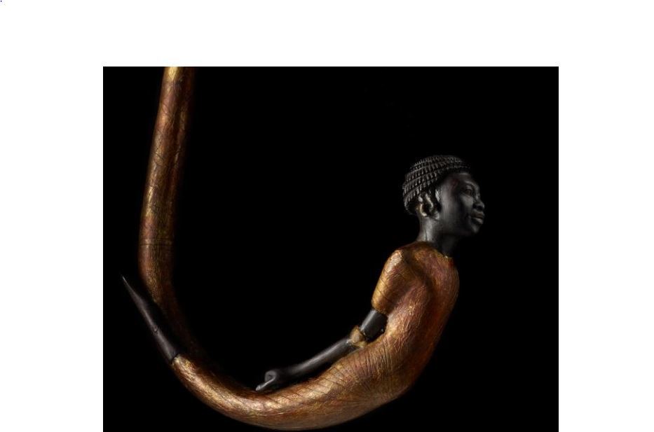 Bastonul este decorat cu forma unui nubian captiv. Conform unei versiuni, faraonul ţinea bastonul cu decoraţiunea în jos pentru a simboliza umilinţa nubienilor.