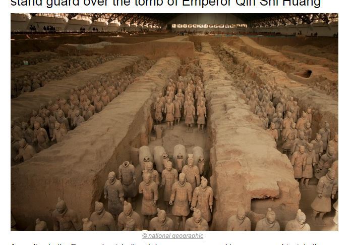 9. Sute de soldaţi de teracotă şi cai în mărime naturală fiind poziţionaţi pentru a proteja mormântul Împăratului Qin Shi Huang