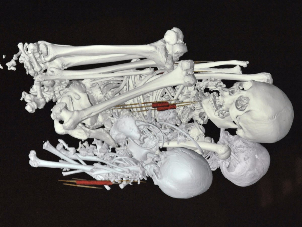 Tomografiile au dezvăluit ce se află în grupurile de mumii din cultura Chancay. În imaginea de mai jos se află o femeie de 20 de ani şi doi copii, unul de şase ani şi altul de doi ani.