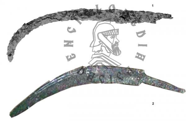 De asemenea, la o scară mai mare a timpului, la nord de Dunăre au existat un număr semnificativ de arme/unelte cu tăişul curbat, de la seceri, coase, cosoare, pumnalul curb numit şi sica, rhomphaea tracică şi varianta mai scurtă a acesteia, falx dacica. Ultima, însă, este cea mai reprezentativă pentru poporul dacic, aşa cum precizează şi poetul roman Publius Papinius Statius, atât de reprezentativă încât se poate asocia arma cu poporul.