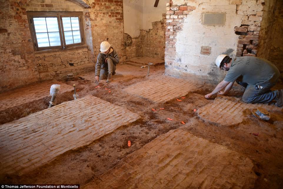 Urmând descrierea realizată de un nepot al lui Jefferson, arheologii au început să excaveze camera care servea drept baie pentru turişti din 1941. Fraser Neiman, director al excavărilor din Monticello, susţine că în urma săpăturilor a fost descoperită o structură sub formă de inimă, un şemineu, un loc pentru gătit şi podeaua originală.