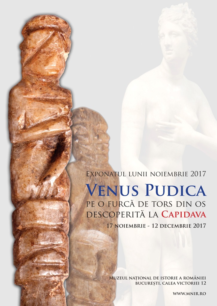 Muzeul Naţional de Istorie a României (MNIR) expune în perioada 17 noiembrie – 12 decembrie 2017, în cadrul seriei „Exponatul lunii”, o piesă deosebită, recent descoperită prin cercetare arheologică – o furcă de tors din os cu reprezentarea Venus Pudica de la Capidava.