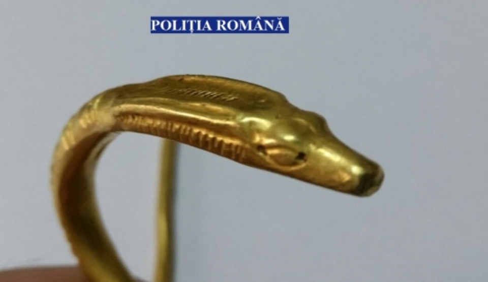 În urma examinării brăţării, poliţiştii au stabilit că aceasta este confecţionată din aur de 24 de karate, cântăreşte 108 grame, iar la unul dintre capete are reprezentat un cap de lup alungit, continuându-se cu un corp de şarpe, însemne specifice dacice.