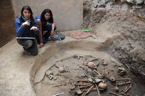 Aproximativ zece schelete umane amplasate într-o formă stranie circulară au fost descoperite într-o groapă străveche din Mexic, din apropierea satului Tlalpan. Un grup de arheologi a realizat descoperirea la câţiva metri de o clădire în care au existat clase şi dormitoare pentru preoţi.