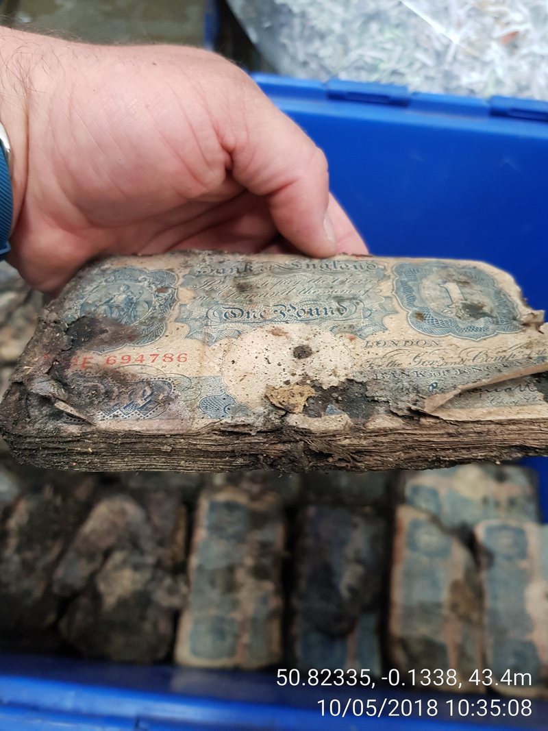 Ceea ce a descoperit de fapt Davis erau teancuri cu bancnote de câte cinci şi o liră, cumulat acestea ajungând la suma de 130.000 de lire sau peste 2 milioane de dolari americani din prezent. Culoarea şi forma bancnotelor sugerează că erau utilizate în cel de-Al Doilea Război Mondial, emise de Banca Marii Britanii, informează Atlas Obscura.