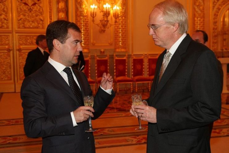 John Beyrle cu Dmitri Medvedev în 2008. Credit: Wikipedia