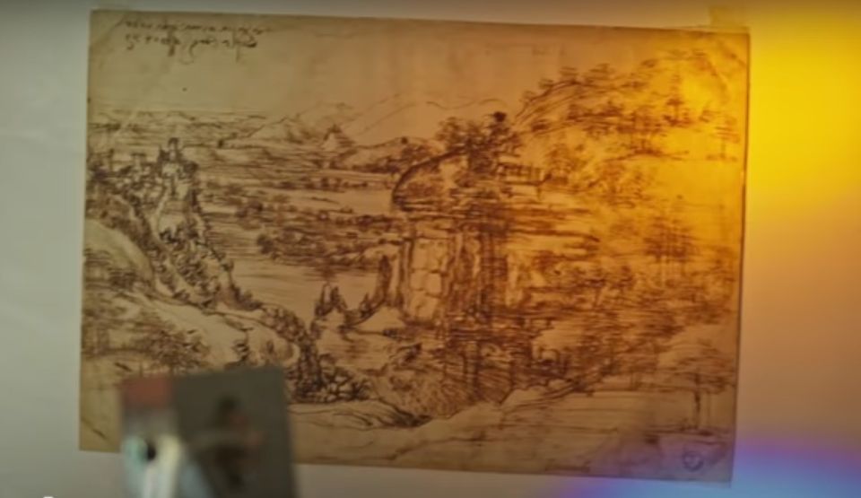 Desenul care a fost analizat este primul realizat de Leonardo da Vinci, fiind datat cu 5 august 1473, pe când acesta avea numai 21 de ani, şi prezintă un peisaj cu valea râului Arno şi Castelul Montelupo, din afara Florenţei.
