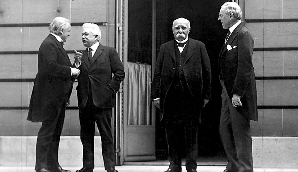 Cei patru mari de la Conferinţa de Pace de la Paris din 1919 (premierul britanic David Lloyd George, premierul italian Vittorio Orlando, premierul francez Georges Clemenceau şi preşedintele american Woodrow Wilson)