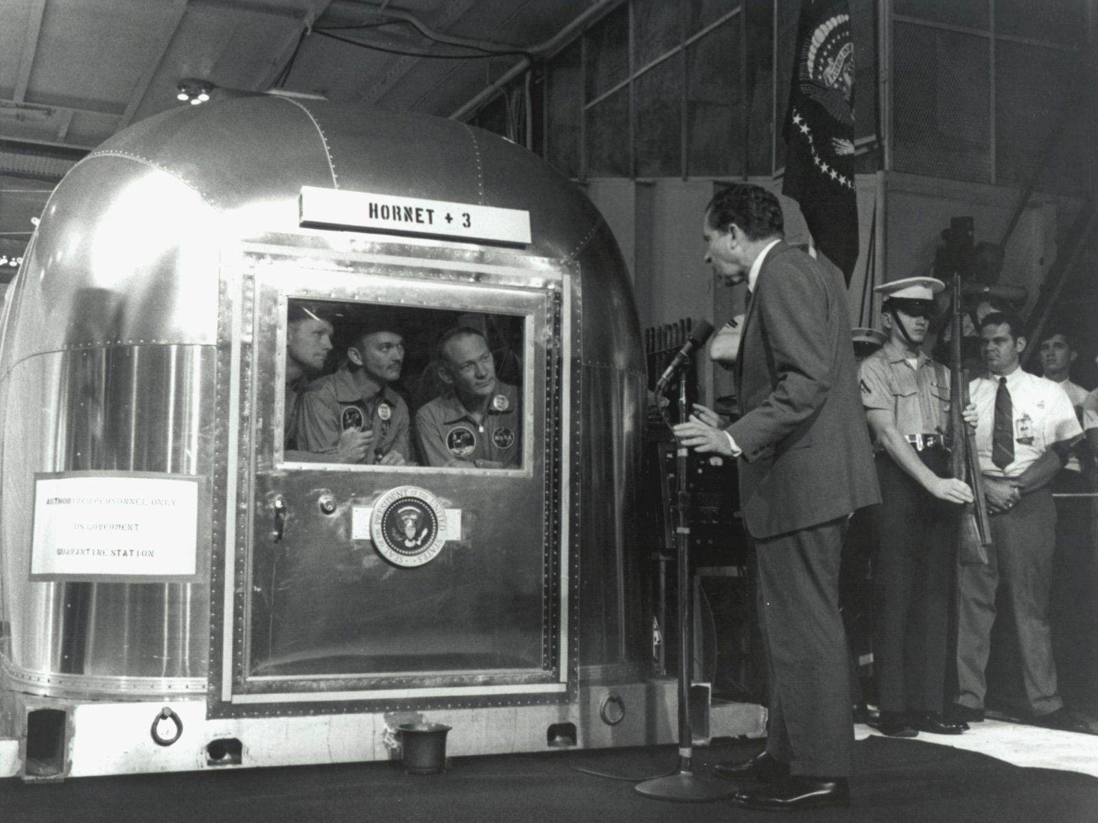 Preşedintele Richard Nixon i-a primit pe astronauţii Apollo 11, la întoarcerea de pe Lună/ Credit foto: NASA