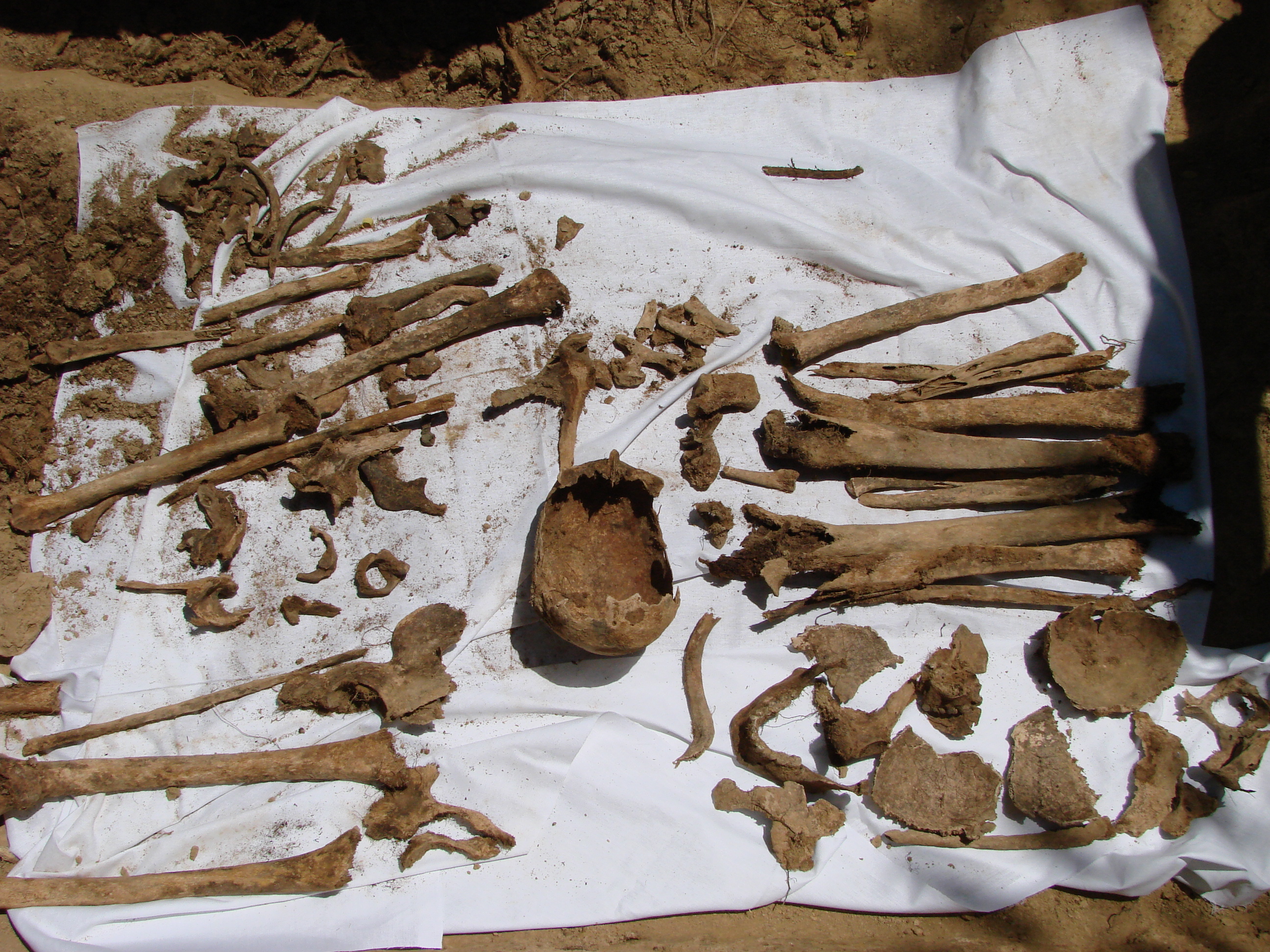Am săpat, cu ajutorul unui miniescavator închiriat cu ora, în solul uscat şi lutos, tare ca piatra, o adevărată tranşee, din care am scos aproape două tone de pămînt de pe latura de sud a blocului construit în 1975, acolo unde am găsit acum cîteva luni cele patru femure umane. Cînd ne-am apropiat de adîncimea la care s-au aflat osemintele, am continuat să săpăm la şpaclu. Fiecare găleată de pămînt scos cu care se adînceşte şanţul lung de 10 metri şi jumătate şi lat de 2 metri şi jumătate ne apropie de adevăr. Aici am găsit, în două zile, opt schelete, unele incomplete din cauza unor gropi ulterioare, săpate la construcţia blocului. Niciunul dintre morţi nu a fost îngropat în coşciug, niciunul dintre ei nu a fost pus în groapă creştineşte, cu capul spre răsărit, ci a fost aruncaţi aşa cum s-a nimerit. Uneori, unul peste groapa altuia, săpată ceva mai înainte, pe care o intesectează.