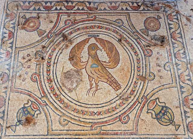 Pe un mozaic din podea este înfăţişat un vultur, simbolul Imperiului Bizantin.