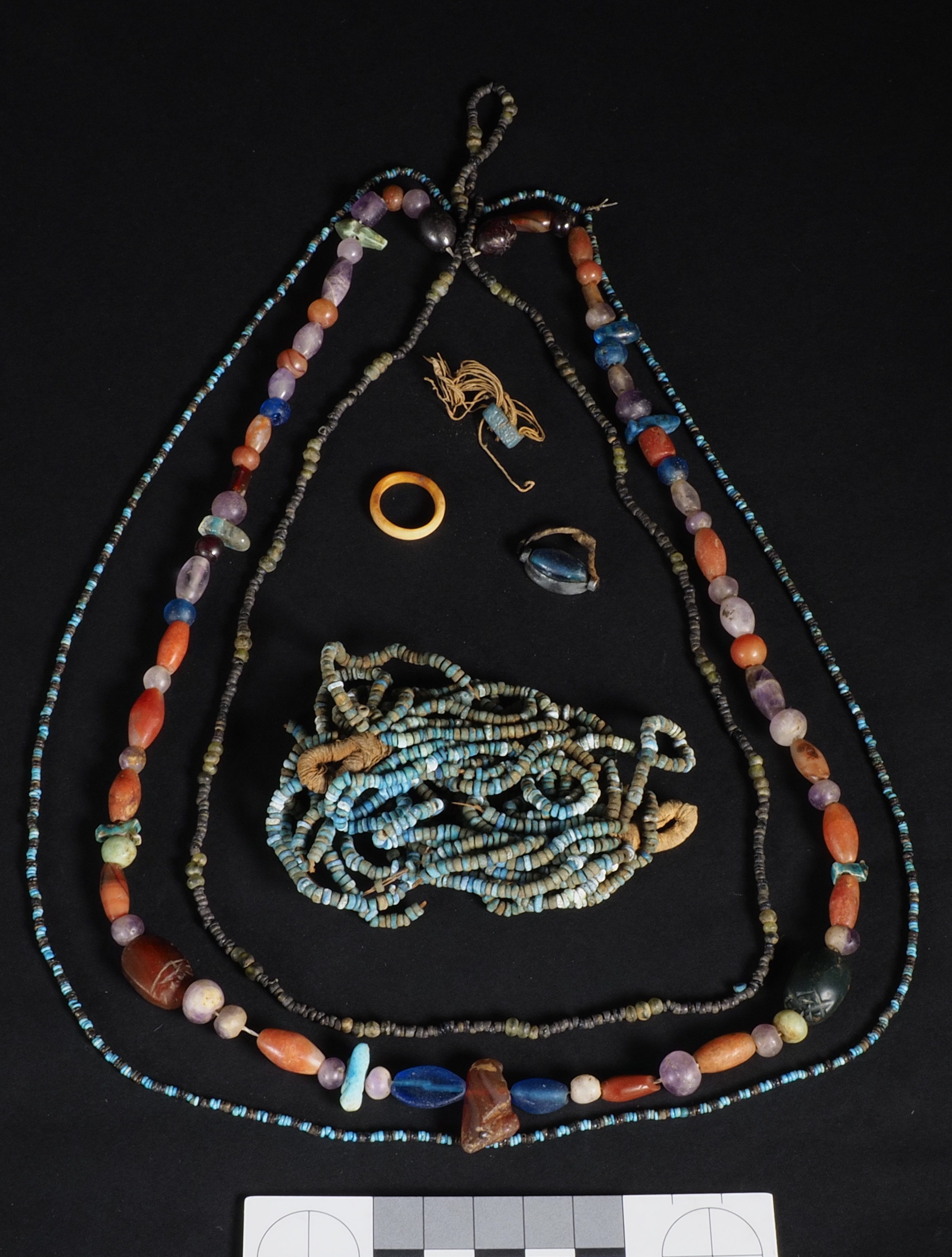 Arheologii explică şi faptul că mumia se află într-o stare de conservare destul de proastă şi că au descoperit asupra acesteia cercei, două inele şi patru coliere aşezate în grămadă pe pieptul acesteia. Aceste coliere erau realizate din materiale scumpe, unele dintre acestea fiind folosite pentru a reprezenta diferite zeităţi. Cercetătorii sunt surprinşi de contrastul dintre bijuteriile descoperite, destul de scumpe după standardele vremii, şi simplitatea sarcofagului.