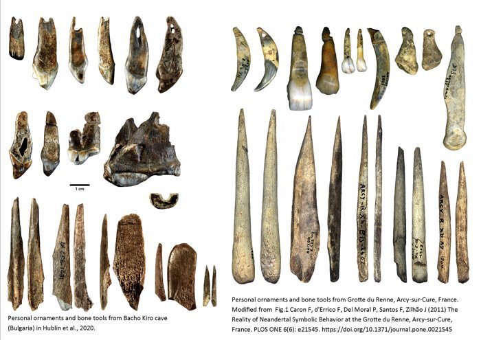Pe lângă rămăşiţele umane, cercetătorii au identificat o serie de unelte de piatră, dar şi artefacte realizate din oasele a 23 de specii de animale.