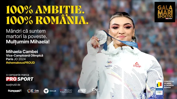 Mihaela Cambei a avut parte de o seară specială la Gala Mari Sportivi ProSport, iar aceasta a primit primul premiu din gadrul evenimentului moderat de Costin Deșliu.