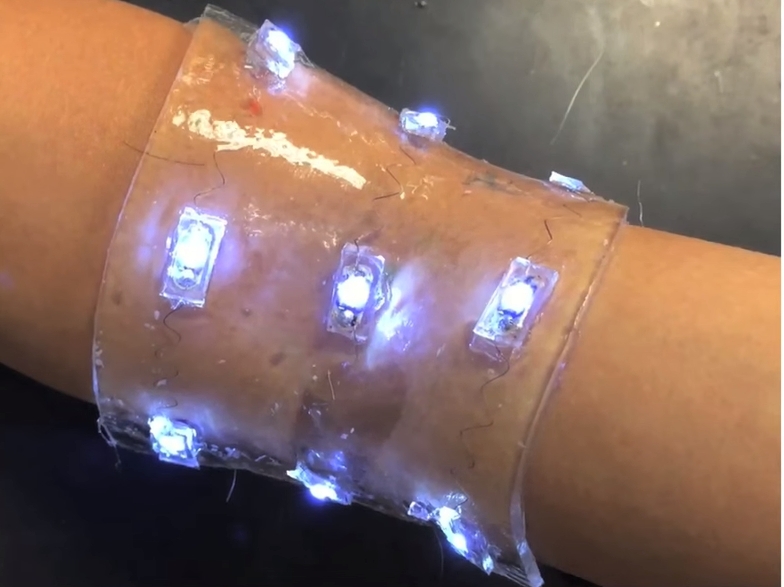 Oamenii de ştiinţă din SUA au inventat un material lipicios şi extensibil, de consistenţa unui gel. Acest material poate fi utilizat ca pansament inteligent pentru răni. Acesta conţine senzori de temperatură şi rezervoare pentru medicamente. Bandajul din hidrogel poate elimina medicamente atunci când înregistrează modificări în temperatura pielii, iar luminile LED se vor aprinde pentru a te anunţa când medicamentele din rezervoare sunt pe sfârşite.