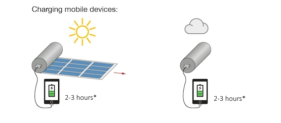 Acesta încape într-un buzunar chiar alături de telefonul mobil pe care ţi-l va încărca atunci când ai nevoie. Panoul lui solar poate fi scos afară dintr-un tub de forma unui sul.
