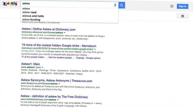 Dacă vei tasta în Google „askew” vei face pagina să pară că stă atârnată într-o parte.