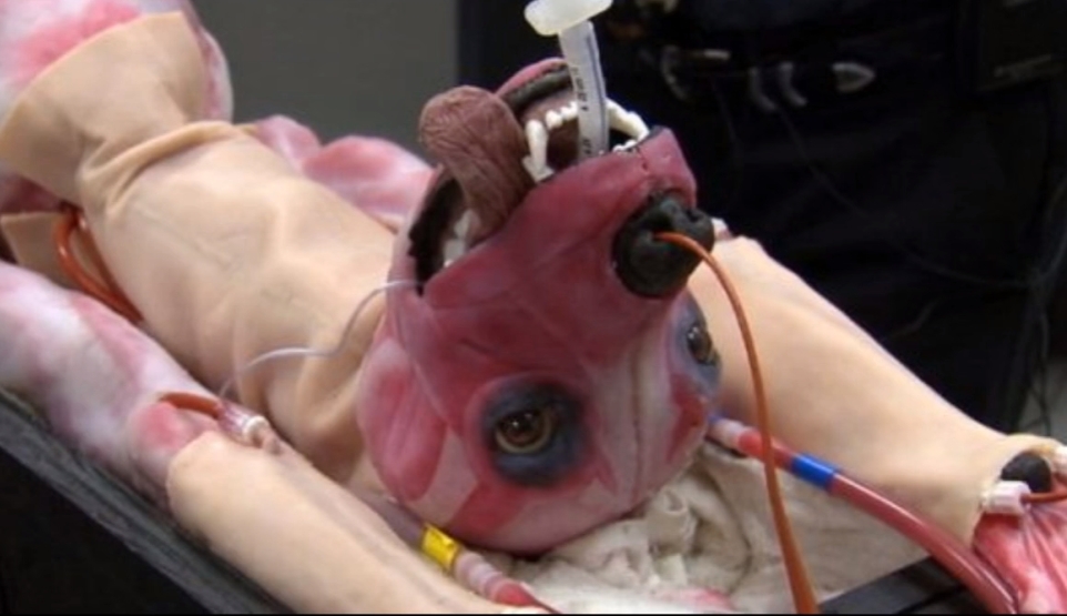Acest câine artificial permite studenţilor de la medicină să realizeze un exerciţiu mai amplu decât practica pe un cadavru.