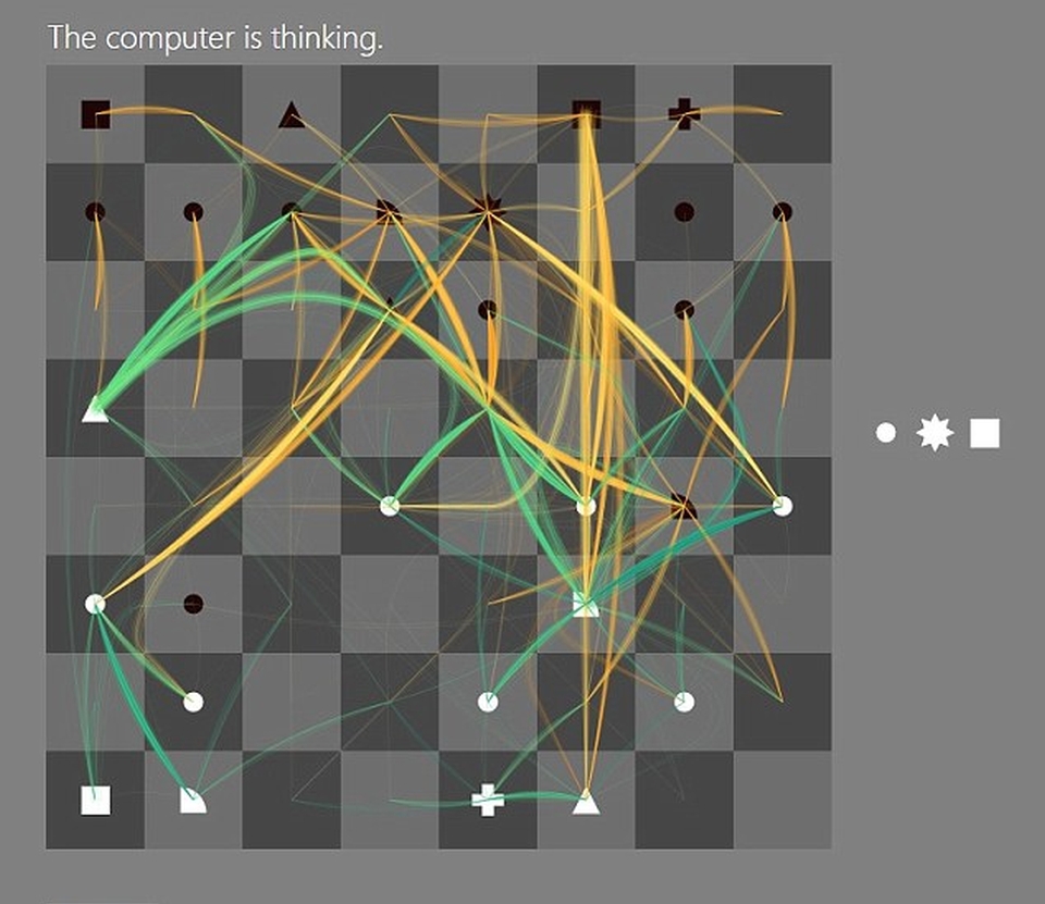 După ce jucătorii realizează mişcarea, apare mesajul următor: „Calculatorul se gândeşte”. Ecranul se acoperă cu o pânză colorată de mişcări posibile, iar AI calculează următoarea mişcare.