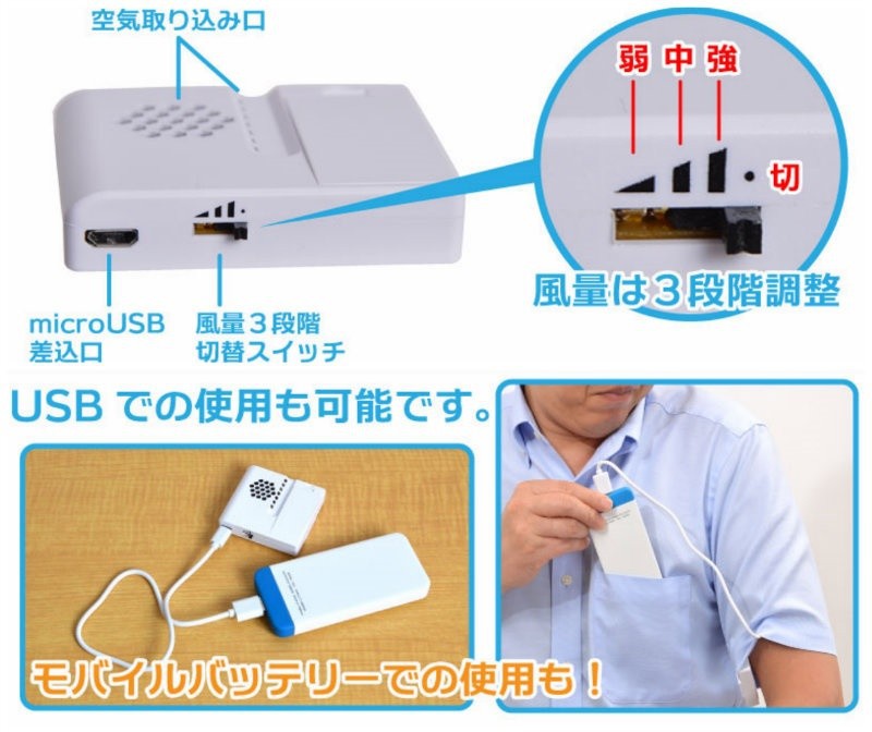 Dispozitivul, numit Waki no Shita Kura, a fost conceput de producătorul de gadgeturi Thanko. Ventilatorul se ataşează la mâneca scurtă a unei cămăşi sau a unui tricou cu ajutorul unui clip.