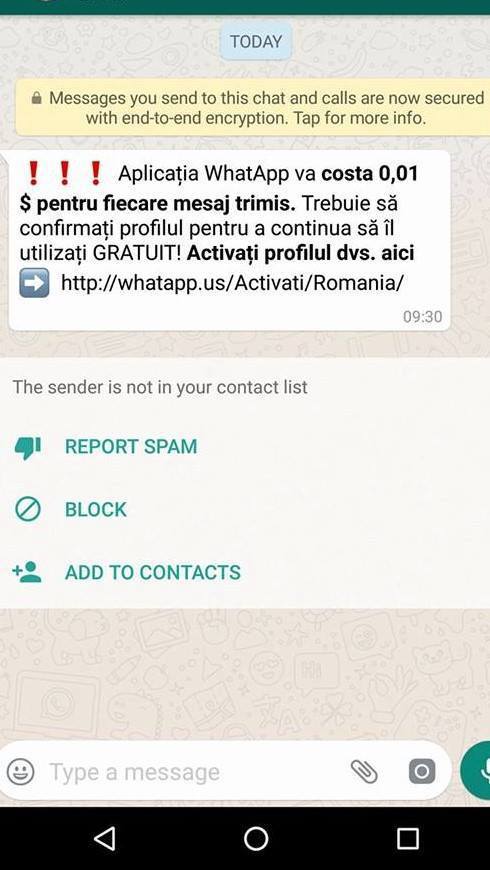 „Whatsapp este un serviciu GRATUIT şi nu condiţionează continuitatea furnizării sale de plata unei anumite sume de bani ori validarea datelor!”, explică specialiştii.