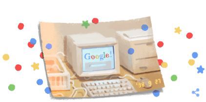 Compania a marcat momentul printr-un doodle care înfăţişează un monitor voluminos pe care se vede unul dintre primele logo-uri Google, cel care se încheia cu un semn al exclamării folosit din 1998 până în 1999, şi cel care a folosit pentru prima dată culoarea albastră pentru primul ”g” din cuvânt.