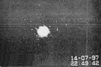 Ar trebui, poate, sa mentionam si cazul din 14-15 iulie 1997, caz amplu mediatizat in mass-media acelor ani, in care operatorii din turnul de control de la aeroportul Otopeni au fost martorii unui incident de-a dreptul bizar, un incident in care a fost remarcata aparitia unei lumini circulare, situata in vestul Aeroportului, intre Buftea si Corbeanca. Pe tot parcursul observatiei, radarul din turn nu a detectat nici o tinta neidentificata. Fenomenul a fost observat din interiorul turnului si de pe terasa acestuia. Prin binocluri, s-a vazut ca la mijlocul petei circulare era o fasie orizontala colorata in alb, portocaliu si rosu, culori care se transformau una intr-alta. Cand s-a aprins balizajul, in vederea aterizarii unei aeronave C-130, operatiune care a durat 12 minute, fenomenul a disparut, reaparand spre sud-est, in directia localitatilor Tunari si Stefanesti.