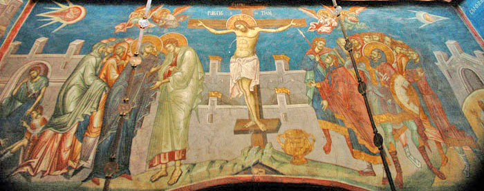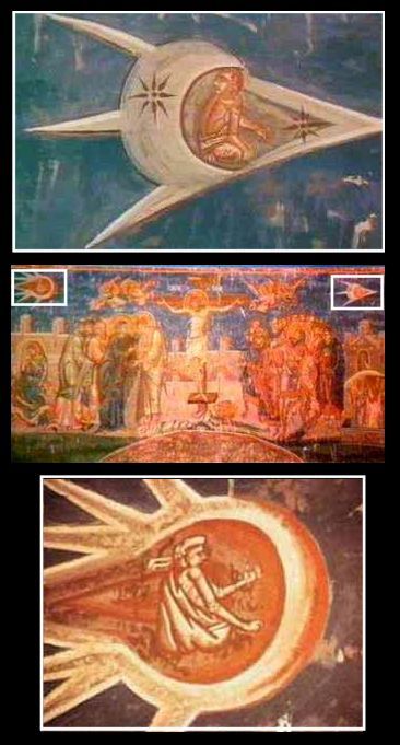 Este un caz de pictura murala, aceasta reprezentare aflandu-se deasupra altarului Manastirii Visoki Decani din Kosovo, Iugoslavia. A fost realizata in 1350. In ambele colturi superioare ale picturii, adica de-a dreapta si de-a stanga lui Iisus pe Cruce, se afla reprezentat cate un vehicul zburator, cu pilot la bord. Una dintre aeronave este decorata cu doua stele stralucitoare, al caror model se aseamana cu emblemele aplicate pe unele aparate de zbor moderne. Este oare posibil sa fi existat martori ai aparitiei unor asemenea OZN-uri de tip monopost, in Serbia medievala?