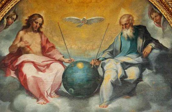 A fost pictata de Bonaventura Salimbeni, in 1600. Astazi se afla in biserica San Lorenzo din San Pietro, Montalcino, Italia. A se observa dispozitivul de forma unui satelit sovietic Sputnik, despre care unii cred ca ar fi reprezentarea stilizata a Pamantului. Ufologi de pe tot intinsul planetei au vizitat Montalcino pentru a privi aceasta pictura uluitoare. Lucrarea este structurata vertical iar Sfanta Euharistie este amplasata in centru, inconjurata de importante fete sfinte si bisericesti. In portiunea superioara a picturii este infatisata Sfanta Treime. Dar ce este obiectul ciudat din centrul portiunii superioare, aflat intre Dumnezeu Tatal si Dumnezeu Fiul? Si ce reprezinta cele doua antene care il patrund? Reprezentarea sferei i-a socat pe ufologi, deoarece seamana foarte mult atat cu satelitii Sputnik, cat si cu satelitul Vanguard II, lansat de SUA in 1959.