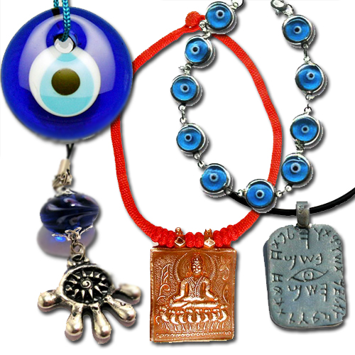Larg utilizate, de asemenea (aici ne aflam pe un teren cunoscut, caci si la noi se intalnesc asemenea „amulete”) sunt panglicile ori snururile de culoare rosie (rosu, adica sange, adica viata, dupa interpretarea traditionala pe care o dau etnologii).