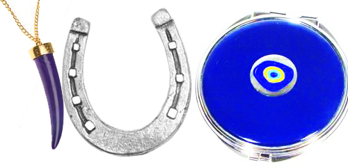 Potcoava – tot „ceva” in forma de corn de luna (vezi mai sus); oglinjoare (care reflecta, „trimit inapoi” privirea malefica), seminte ori pietre semipretioase cu un desen concentric, sugerand ochiul. Lumea e plina de obiecte menite sa ne apere de raul neinteles, dar adesea violent, provocat de deochi.