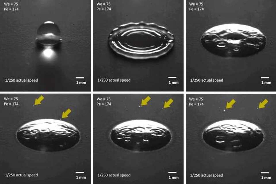 Cercetătorii au urmărit procesul cu un sistem de camere de mare viteză. În funcţie de viteza picăturii şi proprietăţile solului, un nor format din sute de picături de aerosoli pot fi dispersate în mai puţin de câteva microsecunde. Cercetătorii au văzut acest lucru în condiţii de lumină şi ploaie moderată, în timp ce mai puţini aerosoli au fost eliberaţi în timpul ploilor puternice.