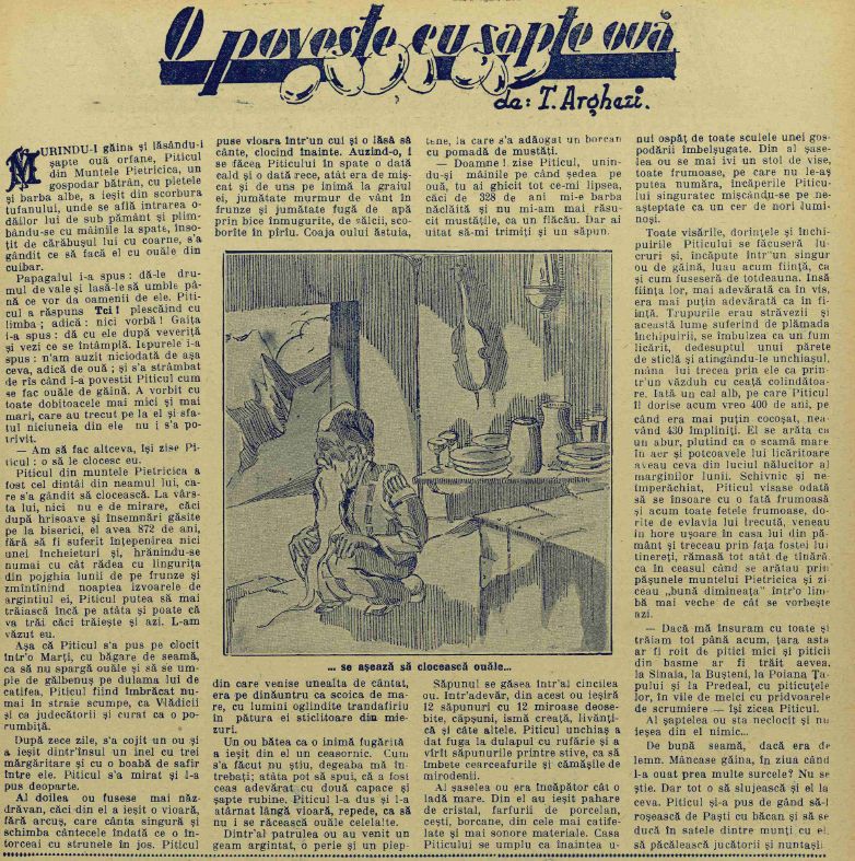 În paginile prăfuite ale celebrei reviste interbelice clujene „Realitatea Ilustrată”, în numărul din 17 aprilie 1930, se regăseşte o poveste scrisă de Tudor Arghezi cu prilejul sărbătorilor de Paşti.