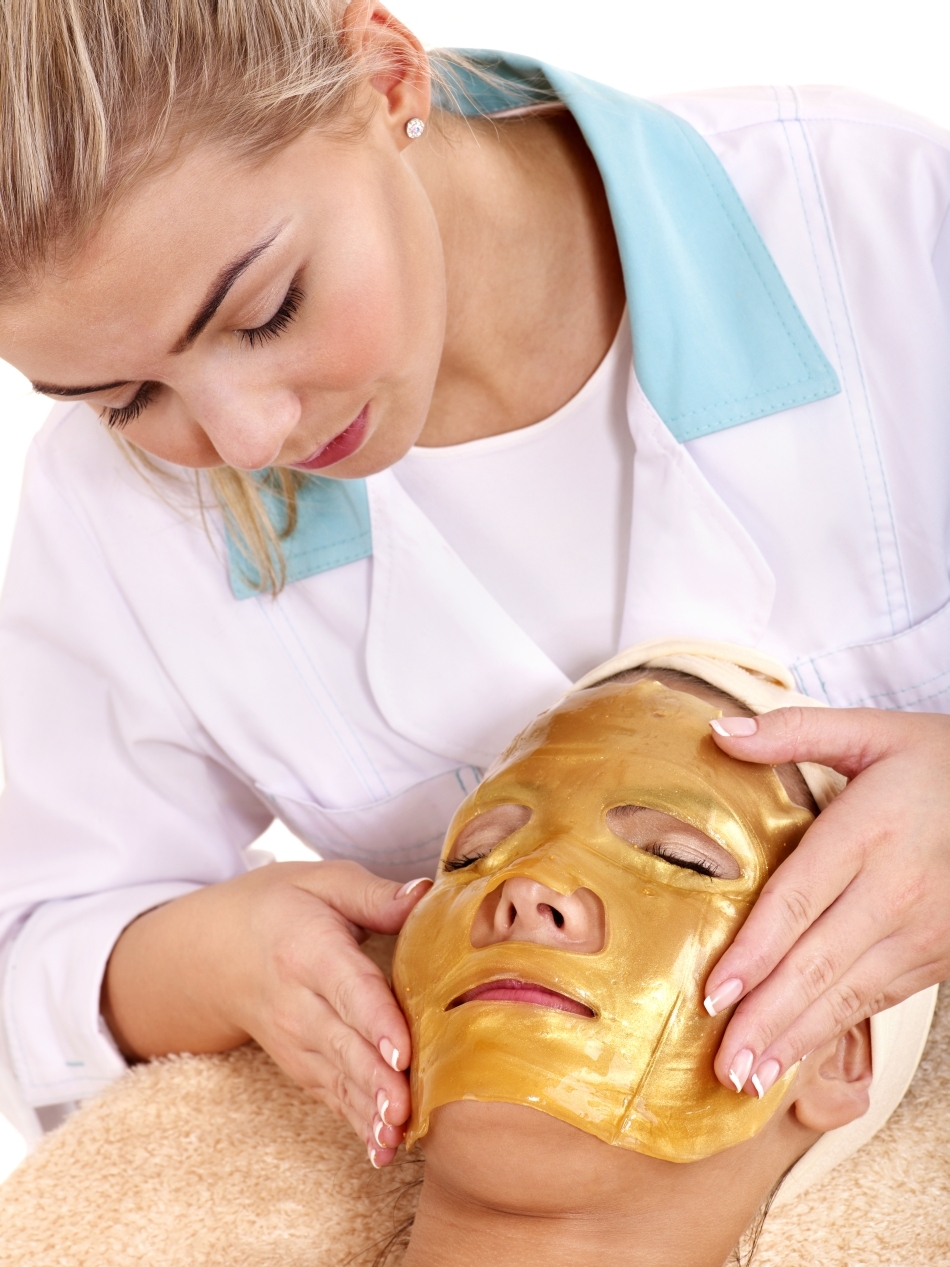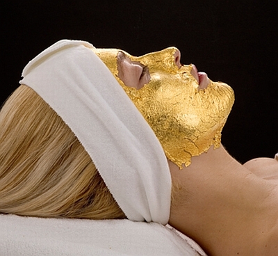 Produsele de lux conţinând aur nu se opresc aici. Saloanele de înfrumuseţare şi spa-urile oferă măşti de faţă conţinând aur. Spre deosebire de masca folosită de Cleopatra, care era din aur solid, noile tehnologii permit aurului să fie absorbit de către piele. Liderul în acest domeniu este compania japoneză Umo, care a conceput o mască facială cu aur de 24 de carate. Acesta se absoarbe în piele, încetinind degradarea colagenului şi a elastinei, stimulând creşterea celulară şi oferind totodată fermitate pielii.