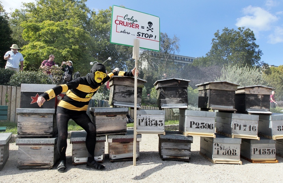 Desi albinele au multi dusmani naturali, daunele produse de acestia nu se compara cu ceea ce le face omul. Folosirea pesticidelor in livezi si campuri cultivate provoaca moartea a milioane de albine, cu consecinte dramatice. Franta, de pilda, a pierdut, in doar 10 ani (1994-2004), 15.000 de apicultori: oamenii au renuntat la o indeletnicire din care, in locul mierii, se alegeau cu pumni intregi de albine moarte.