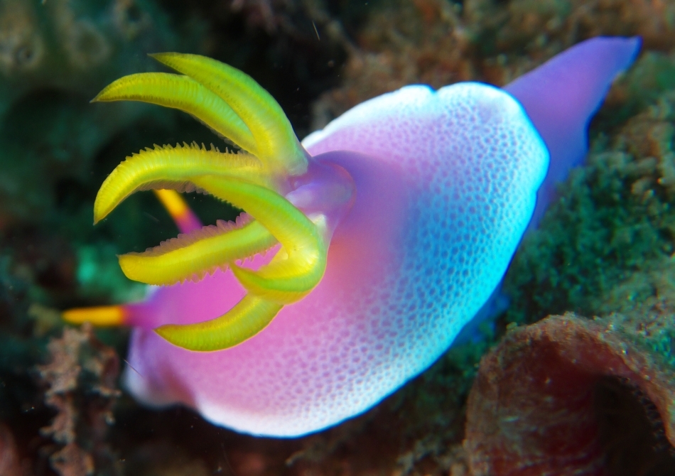 Coloraţi în cele mai nebuneşti culori, uneori în nuanţe atât de aprinse încât par făcuţi din plastic fluorescent; cu pete, cu dungi, cu buline, cu forme pline de detalii bizare, având înfăţişarea unor opere de artă psihedelică, alcătuiesc, printre grupurile de animale ale lumii, unul dintre cele mai strălucitoare şi spectaculoase. Înfăţişarea lor farmecă şi uluieşte privirea, obosind-o aproape prin intensitatea efectului vizual pe care îl provoacă, dar, cu cât vezi mai mulţi, cu atât ai mai vrea să vezi. Aşa sunt mulţi dintre membrii acestui „club” - un grup de melci marini fără cochilie, cunoscuţi sub numele de nudibranchiaţi. Nu e nevoie să ne credeţi pe cuvânt - uitaţi-vă la poze.