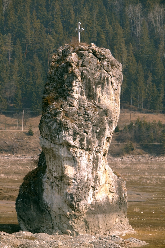 Piatra Dracului, aflată la coada lacului de acumulare Izvorului Muntelui de pe râul Bistriţa, este un monument al naturii cu statut de rezervaţie naturală. Stânca are o înălţime de 23 de metri şi este amplasată pe o terasă la câţiva metri deasupra nivelului apei. O poţi vedea cel mai bine atunci când treci viaductul care traversează lacul de acumulare.