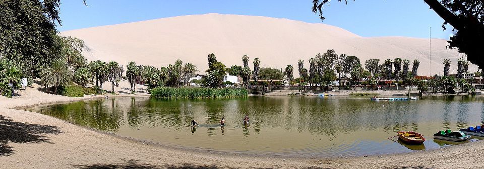 Oaza Huacachina din sudul statului Peru este o mică lagună înconjurată de palmieri şi de dune de nisip gigantice, similare celor din deşertul Sahara. Oaza este înconjurată de mai multe hoteluri rustice, magazine şi chiar o bibliotecă publică.