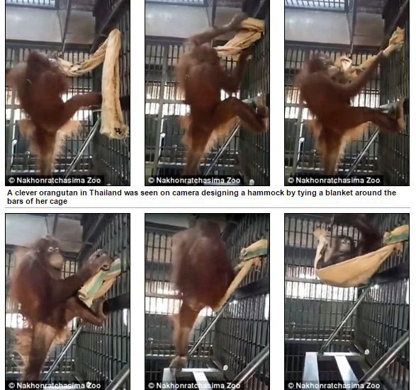 Urgangutanul deştept –Nemo trăieşte în Thailanda. Decizia lui incredibilă de a-şi instala un hamac a fost înregistrată de camerele video de la Grădina Zoologică Nakhonratchasima.