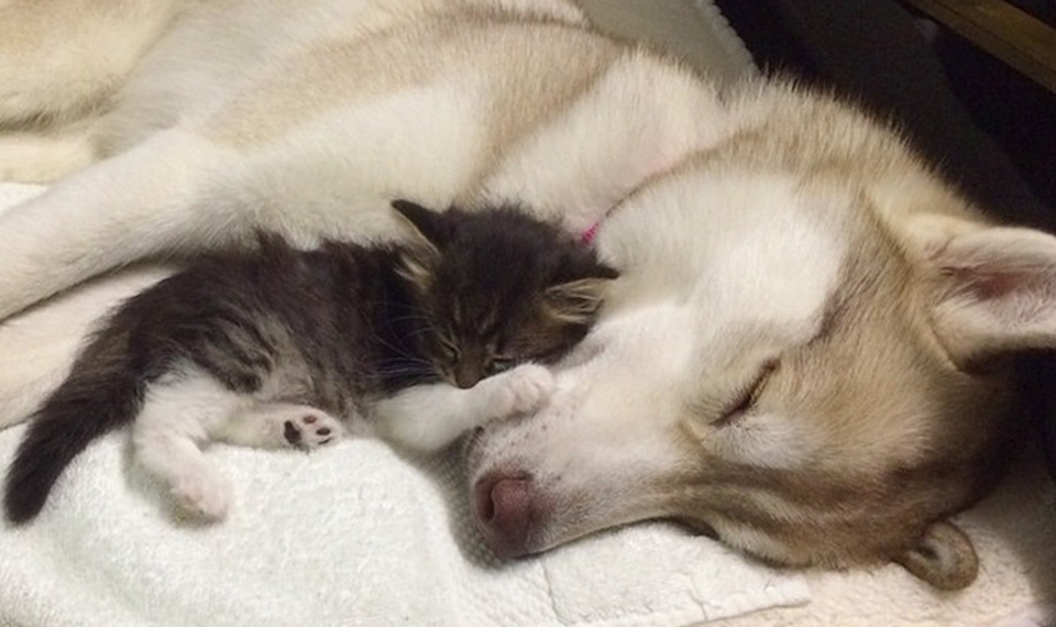 Home » Natură » 3 câini Husky au devenit cei mai buni prieteni cu o pisică pe care unul dintre ei a salvat-o de la moarte. FOTO+VIDEO